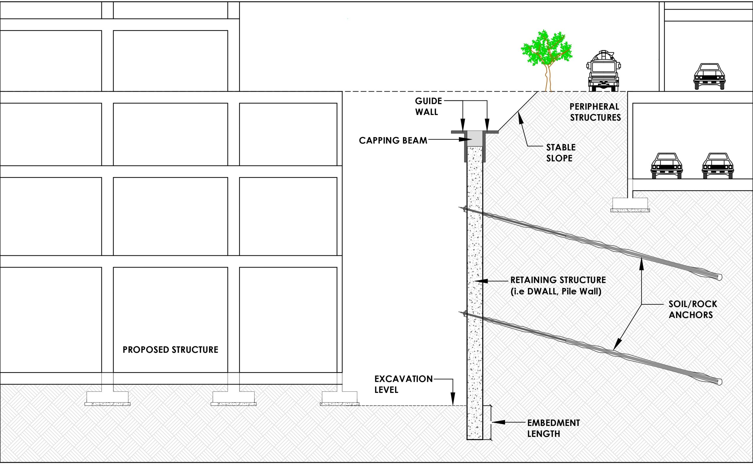 Geotechnical design consultancy focuses on assessing soil conditions to ensure the stability and safety of structures. This includes specialized services like diaphragm wall design and slope stability analysis. Diaphragm walls are underground structures used in deep excavations or as barriers against groundwater. The design process involves evaluating soil properties, groundwater levels, and structural requirements to create robust, impermeable walls that can withstand lateral earth pressures. Slope stability analysis assesses the stability of natural or man-made slopes to prevent landslides or structural failures. Engineers analyze soil mechanics, groundwater effects, and external forces to design effective stabilization measures. These geotechnical services ensure that structures are built or modified with a thorough understanding of soil behavior, minimizing risks and ensuring long-term stability.